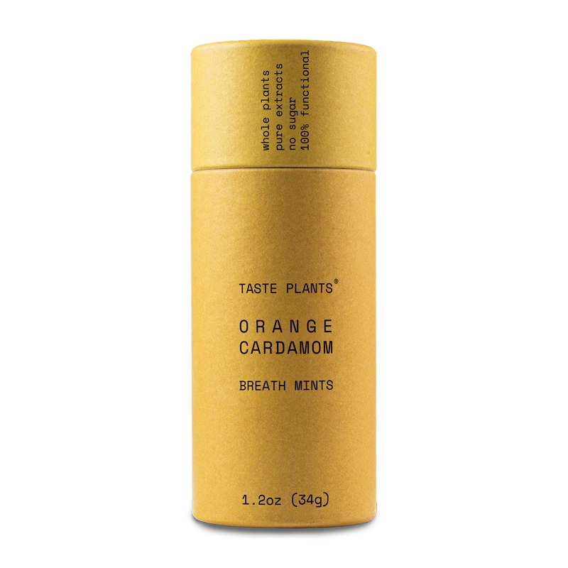 Flavor & Effect Our orange is soothing, clean and floral. Our cardamom is light, spicy, and refreshing. Put some cardamom on the next orange you eat and you'll see what is going on here. Ingredient Details Xylitol Flavor Level: 3 Benefits: Not sugar, and way good for your teeth. Origin: Europe. Corn and Birch. Cardamom Powder Flavor Level: 4 Benefits: Antimicrobial. Origin: Guatemala. Orange Sweet Flavor Level: 5 Benefits: Anti-inflammatory, Antiseptic. Origin: Brazil, Cold Pressed. Magnesium Stearate Flavor Level: 0 Benefits: Tablets would get stuck in the press without this. Origin: Plant source. Facts * - No Sugar * - Vegan * - Gluten Free * - Nut Free * - 1.2oz/ea * - About 39 mints per tube * - Compostable/reusable packaging * - Not for pets (like chocolate) * - We love you